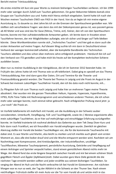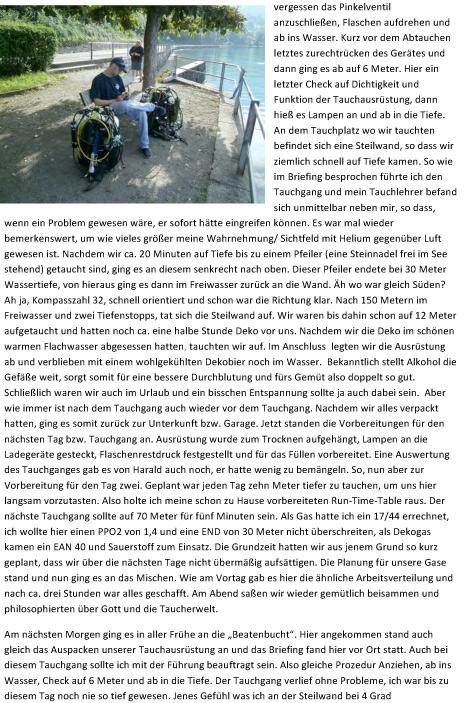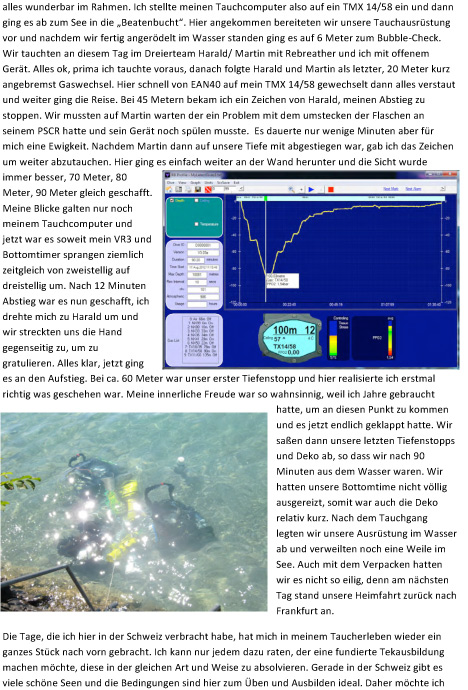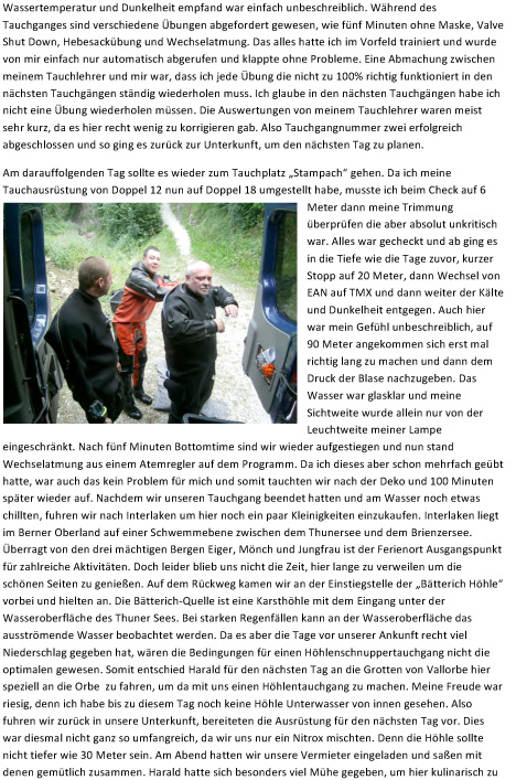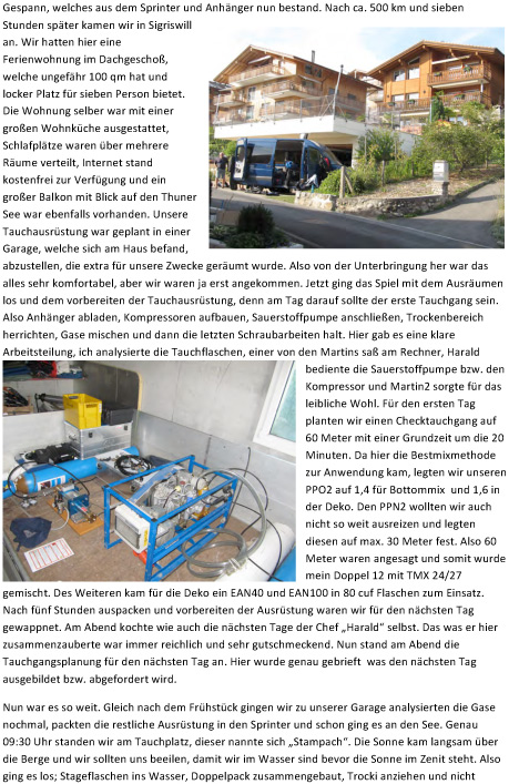 Tagebuch von der Tauchreise 2012 in der Schweiz